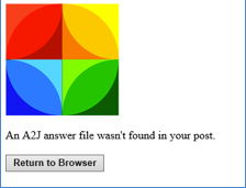 When the problem is related to saving the A2J answers (the first step in the process—a safekeeping task), the email sent contains the A2J answer file. In this event, the A2J answer file may have to be reviewed manually in combination with the logs to determine the problem.