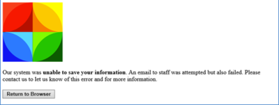 Here’s an example of what is displayed if the A2J interview data doesn’t save and an email also fails: