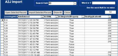 Where the data was imported to the ScreeningX table, the “A2JImportedProperly” box will show “True”. Where the data did not get imported properly, the box will show False.