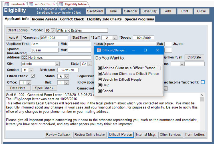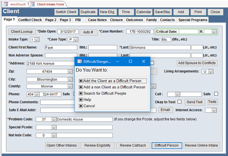 - Add a Difficult Person on Eligibility or Client’s Intake