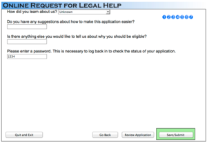 e) The final page allows them to review their application and make any changes they might need to make before submitting. It also asks for a password they would use to log back in to check the status of the application.
