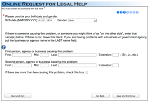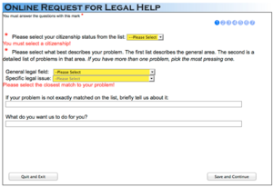 b) The applicant fills out much of the same information they would supply in a telephone or in-person interview. Each page has its own “error checking” so that the applicant can proceed to the next page only if everything required on the current page is complete. Omissions or errors are typically shown with a yellow background and accompanying red error note. Page numbers at the top right change to indicate the progress through the application.