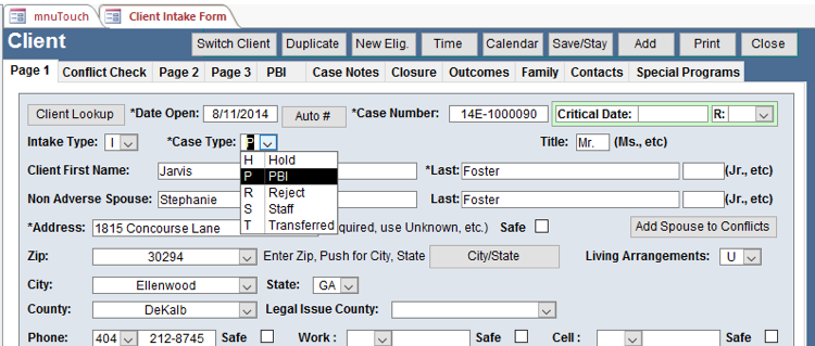 - P (PBI) – The case has been referred to a PBI (Pro Bono Involvement) Volunteer Attorney (Note: If you refer a case to PBI, make sure you change the case type to P)