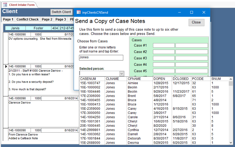 - iii) When the form comes up, either enter in the case numbers or use the Choose from Cases box to locate the case numbers with the client’s name.