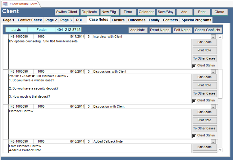 Client Intake gathers demographic information on a client and tracks their problem from initial contact to closing. You can add a client by going to Add Client Client.