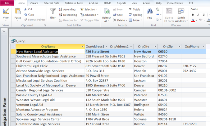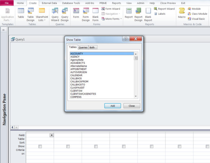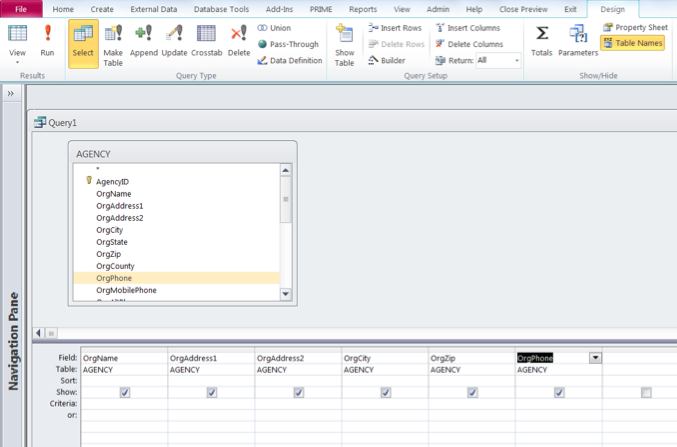 7) Once you save your query, it will be listed under your list of Queries in Prime on the Navigation Pane. However it will not show up in the Prime Menus. The steps to get it to show in the menu is described later in this chapter.