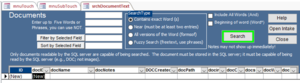 Searching within the text of a document is a bit different and, as noted before, will require a bit more setup on the SQL server to operate properly. This is described earlier under the discussion of Document Search Screens.