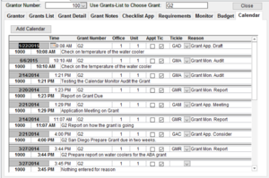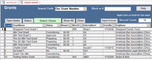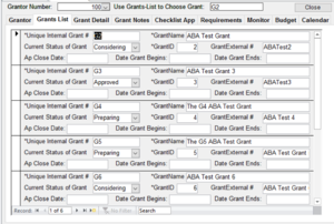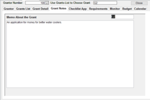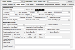 Once the Grantor has been entered, you don’t need to add it again. You merely select it from a search screen. The next step is to Add Grant. This allows you to track all the grants offered by a grantor.