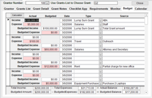 8. Budget – A budget for a Grant consists of two things: how you plan on spending the money and how you actually spent it. This page allows you to enter slips that track both of these