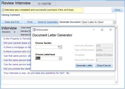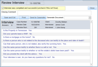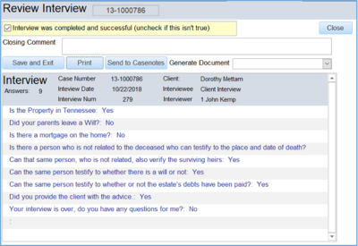 2. Documents can be generated at the end of doing an interview or afterwards by reopening the intake. a. End of the Interview