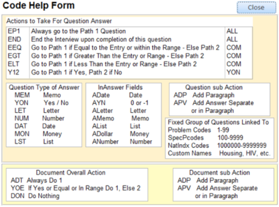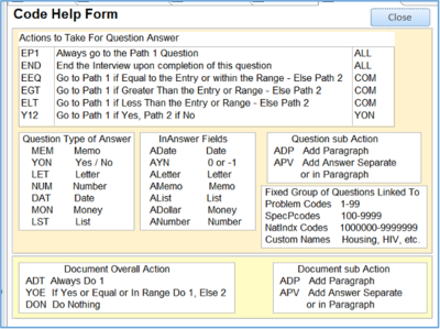 g. InpInCodeHelp This form provides help by displaying the usual codes used in the Intake System and what they mean.