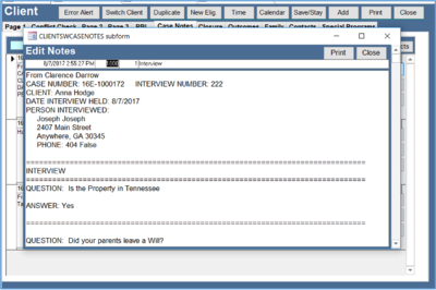 d. The interview can be sent to the Client’s case notes. The interview is still saved without doing this. However, putting it with notes makes it more convenient to review.