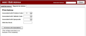 You can now go to the Reports for Advice tab to print out the advice you have associated with a particular code