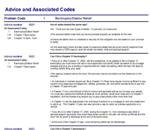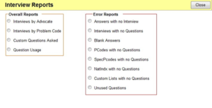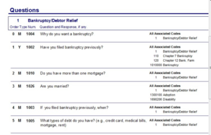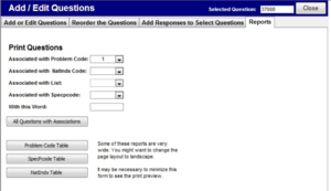 - vi) Reports - This is the area where you can get print outs and reports that will help you when working with questions. For example, you can print a list of your Specpcodes for reference when linking questions to codes. Let’s print out the list of questions under problem code 1, Bankruptcy.