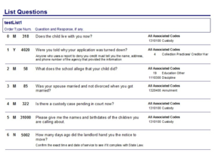 Note the printout shows the question that is associated with the list and the other codes the question is associated with.