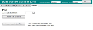 You may want to print out your custom lists for review by you or others. You can do this from the Reports Tab. Let’s look at the testList1 list.