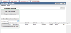 Clicking on the Show Old Interviews on a Case button displays a pull down with the list of old interviews that apply to the case.