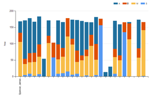 Displays the total of each person’s time entries during the prior month, broken out into color representing the various activity types (Case, PBI Case, Matter, Support Activity). You can quickly review staff members’ entries to ensure total time is correct, as well as be able to tell how their time entries break out by function.