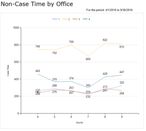This report shows totals of non-case time by month for each office. Is one office remarkably different from the others? Is there a valid reason for that, such as being an intake center?
