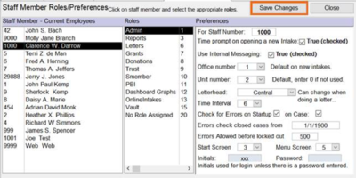 1. Staff may or may not be able to use certain features based upon their permissions or roles. That means that certain tiles and ribbon bar choices will not work unless staff are given permission to use them. For example, if they are not given permission to choose the Trust Account under their roles or permissions, they won’t be able to see these options in the touch tiles or they just won’t work. They will also be locked out of choosing these options on the ribbon bar. Change a person’s permissions by going to the Ribbon Bar, Admin, Staff Settings and Staff Roles. Setting a person’s Role as Admin gives them permission to run all the choices in the system.