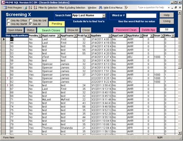 Staff Portion of Online Screening System
