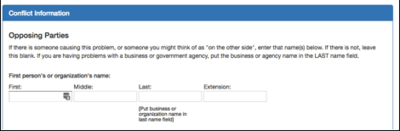 Figure 9 - Page two example in a smaller screen size On page three, we get conflict information from the applicant: