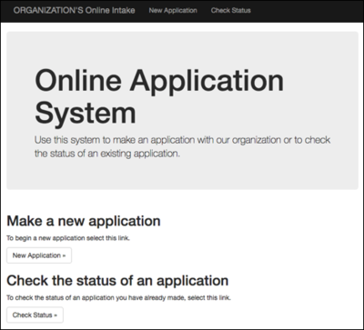 From the main page, the applicant may choose to either (1) make a new application, or (2) check the status of an existing application: