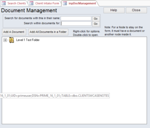 Your organization may have a brief bank of some sort that you would like to make available to your PBI attorneys. If the organization desires to make non-case specific documents available to their PBI attorneys, those documents may be added to the non-case document system. To access that system, in the menu, navigate to Add-->Other-->Document Noncase. The non-case document system screen will look like that shown in Figure 59.