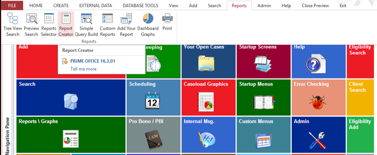 8) After being prompted for Office number, the report provides open cases by Office and then in each office by Advocate. The reports that are created are compatible with Microsoft Access and can be modified with Access. However, they have the special Edit report feature. This opens a screen just like building a new report but allows us to modify the existing one.