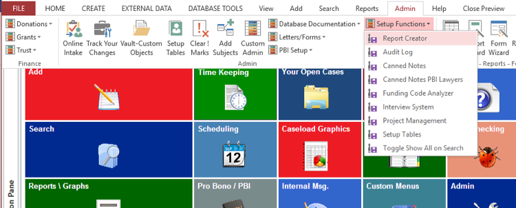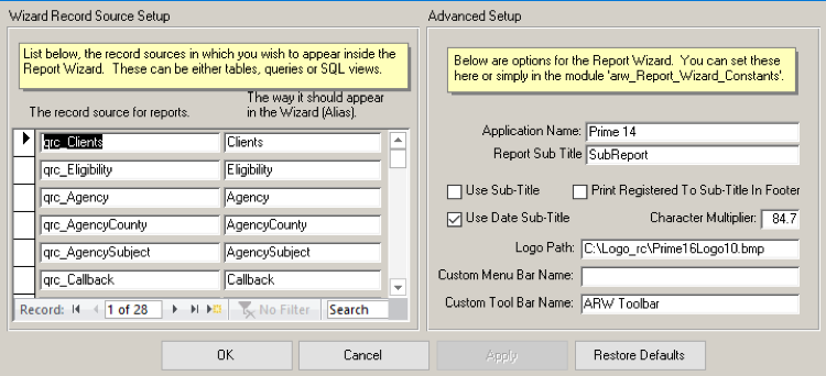 b) Although this may ‘sound’ difficult, a record source is merely choosing what table(s) you are going to build a report on. Since this is a Database Administrator function, it is located under the Admin and you must have permissions to do this. If you don’t have permission to set up a record source, skip to Generate a Report below.