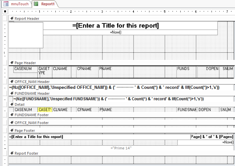 16) If you prefer, you can choose to modify or tune the report directly using Access, just as a standard Access report. This is the Access view of the report.