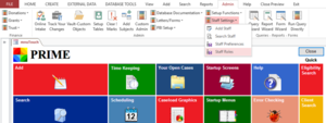 b) On the Access Ribbon Bar, Staff Roles are set under Admin Staff Settings Staff Roles.
