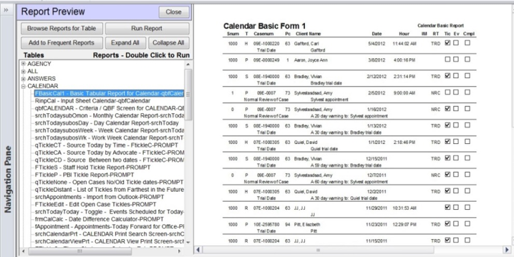 a) The Report Tree View is a tree view of the reports in Prime. The main branches are the table names. If you click on the (+) next to a table, such as Calendar, it will expand all the reports under that table. If you single click on a report, you will get a preview of that report on the right.