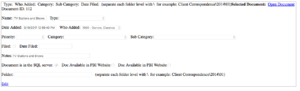 Searching within the text of a document is a bit different and, as noted before, will require a bit more setup on the SQL server to operate properly. This is described earlier under the discussion of Document Search Screens.