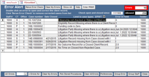 1) When Prime first opens, an Error Alert Screen appears, showing you the errors you have in the cases listing you as the staff member.